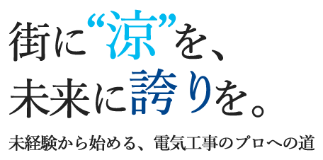 社会インフラを支える大手業者さまから長年にわたってご依頼をいただいていることに感謝をし、時代の変化に合わせて常に高度な技術をご提供できるように日々研鑽を積んでおります。近年では省エネを目的として空調設備の改修を行なうことも少なくありません。人々がより快適に過ごせる環境を実現すべく、電気工事という目には見えない部分から、地域の発展を支えてまいります。