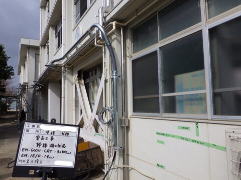 某高等学校の空調更新に伴う電気設備工事を行ないました。
